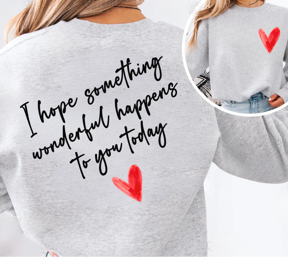 A cozy sweatshirt with a message every heart needs: “I hope something wonderful happens to you today.” 💕