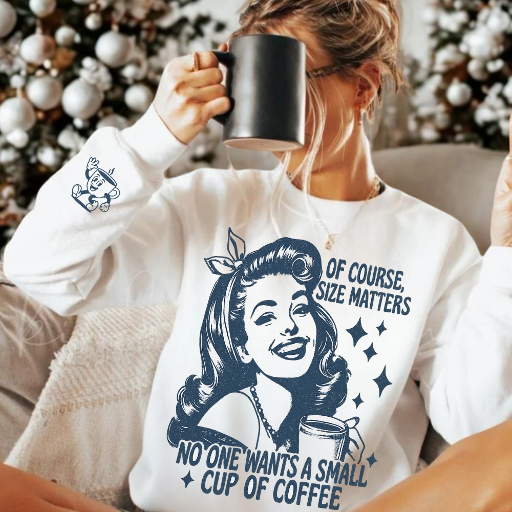 Coffee Lover Sweatshirt - "Of Course Size Matters, No One Wants A Small Cup Of Coffee" Retro Graphic Crewneck
