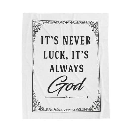 Religious Plush Blanket — "It's Never Luck, It's Always God" Velveteen Throw