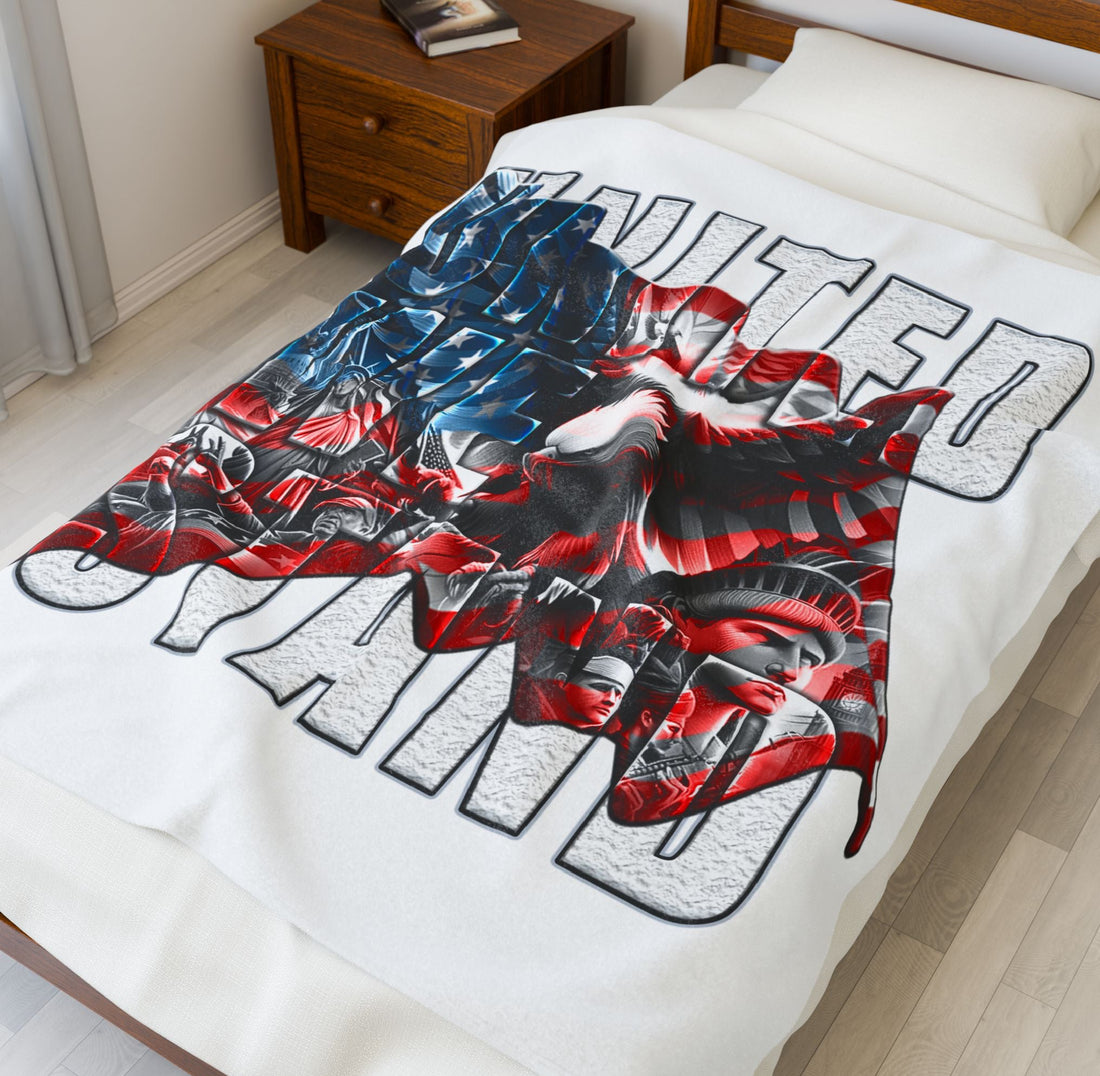 Patriotic Lightweight Velveteen Plush Blanket, Cozy Throw for Home Decor, Gift for Veterans, & Military, Warm Soft Blanket.