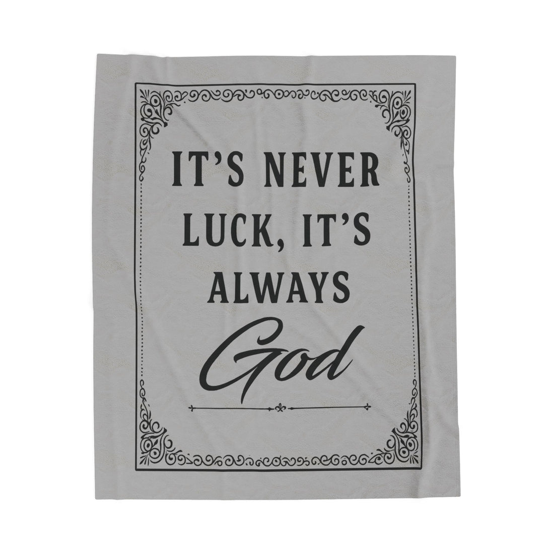 Religious Plush Blanket — "It's Never Luck, It's Always God" Velveteen Throw