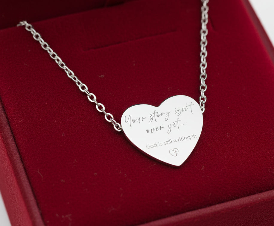 Engraved Heart Necklace "Your story isn't over yet...God is still writing it!