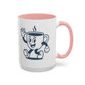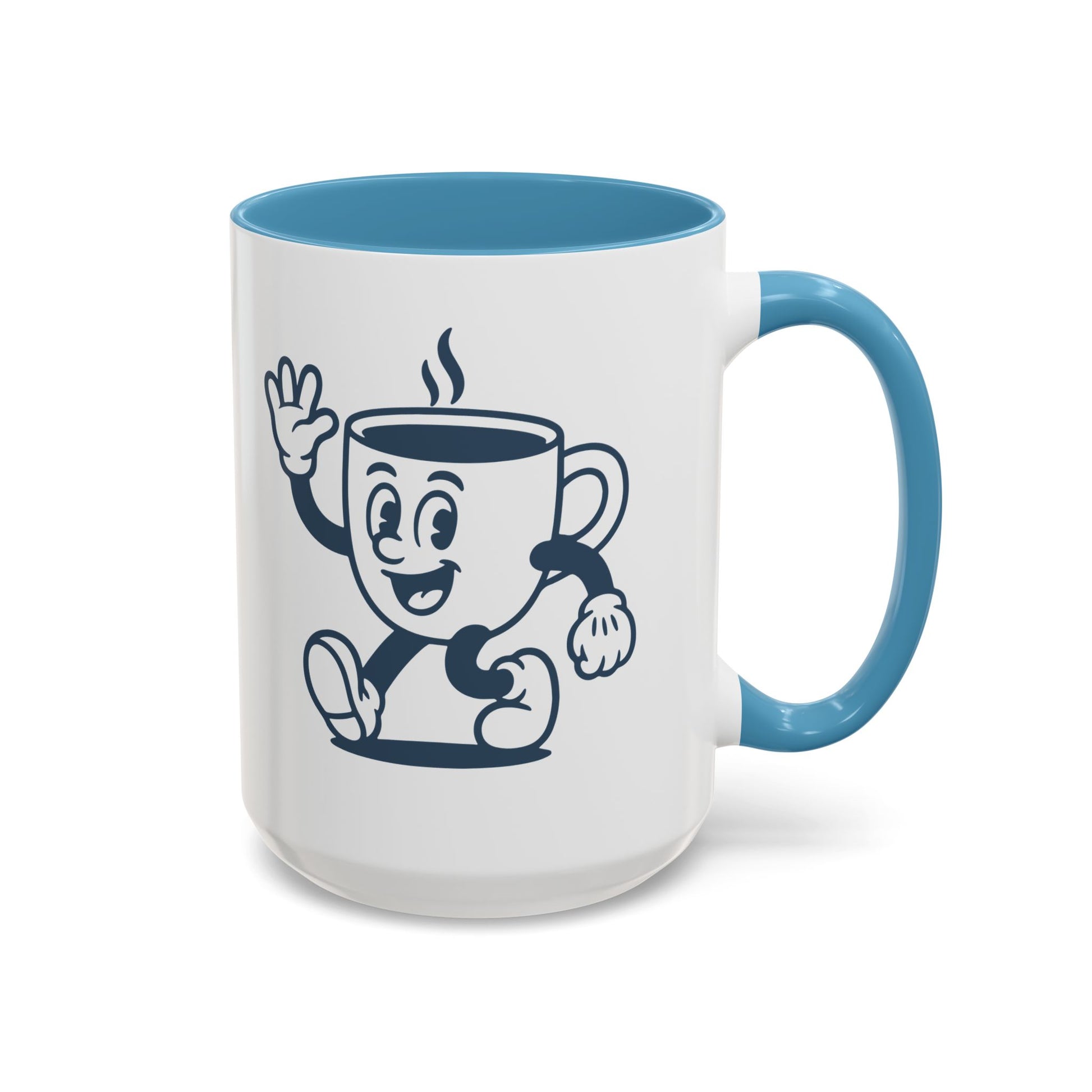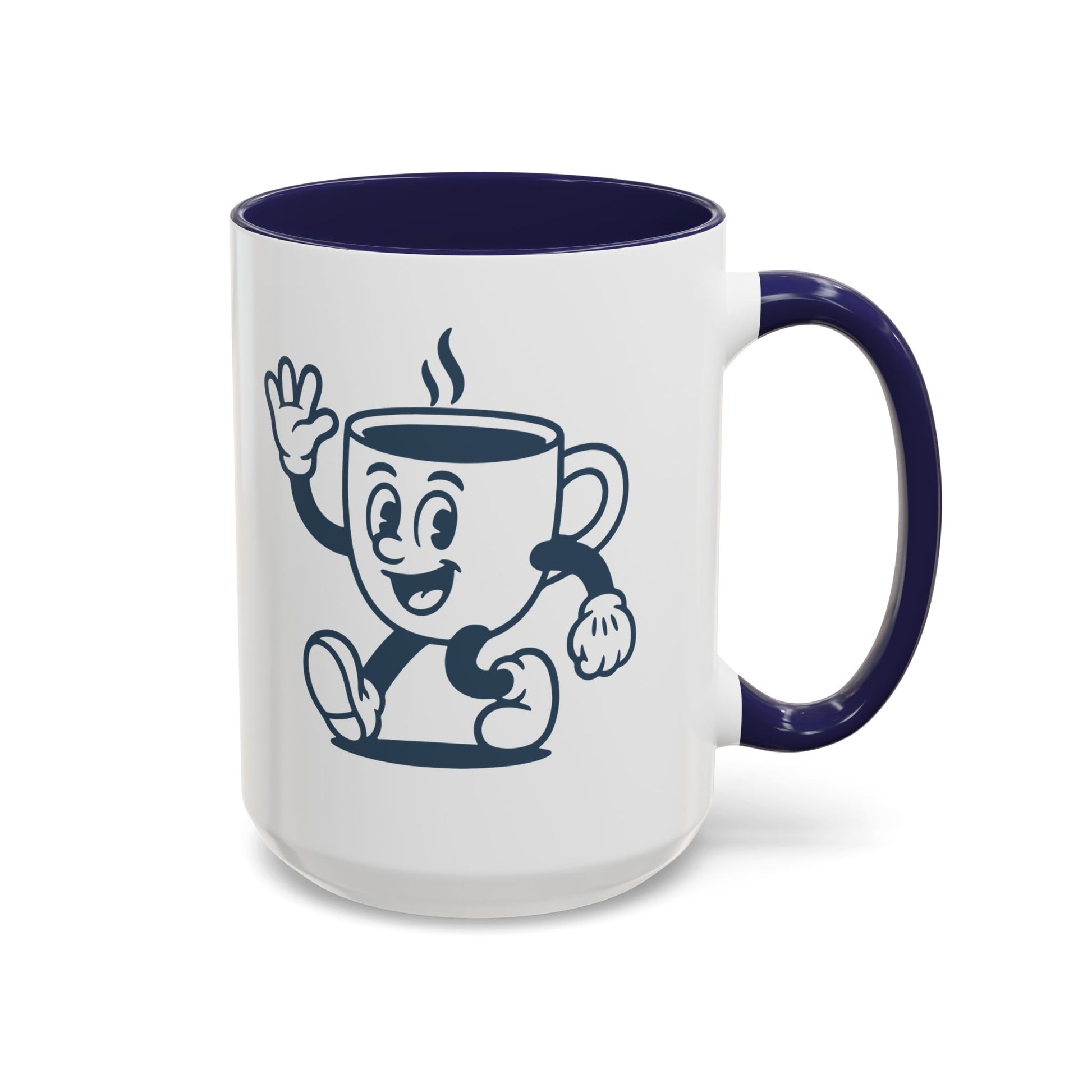 Morning feels like a small, joyful ritual. This ceramic accent mug brings that warmth to your hands — glossy white with a bold colored interior and handle that pop against the clean design. The playful cup character and simple navy artwork add a bit of vintage cartoon cheer to slow mornings, late-night work sessions, or shared coffee breaks. It’s sturdy enough for daily use, easy to care for, and bright enough to lift the mood when you need a moment of comfort.