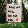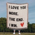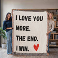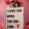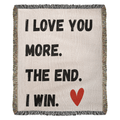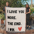 LOVE YOU MORE. THE END. I WIN. w/red heart//60"x50" HEIRLOOM WOVEN BLANKET