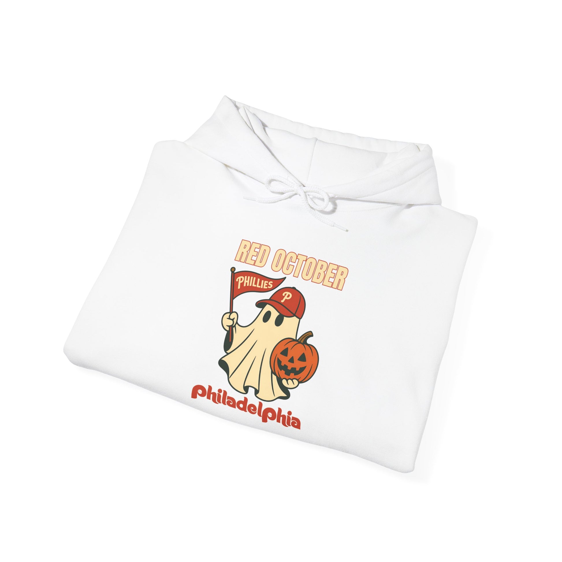 Red October Hoodie, Halloween Ghost Hoodie, Unisex Sweatshirt, Fall Fashion, Cute Halloween Apparel, Gift for Pumpkin Lovers, Cozy Hoodie, October Style