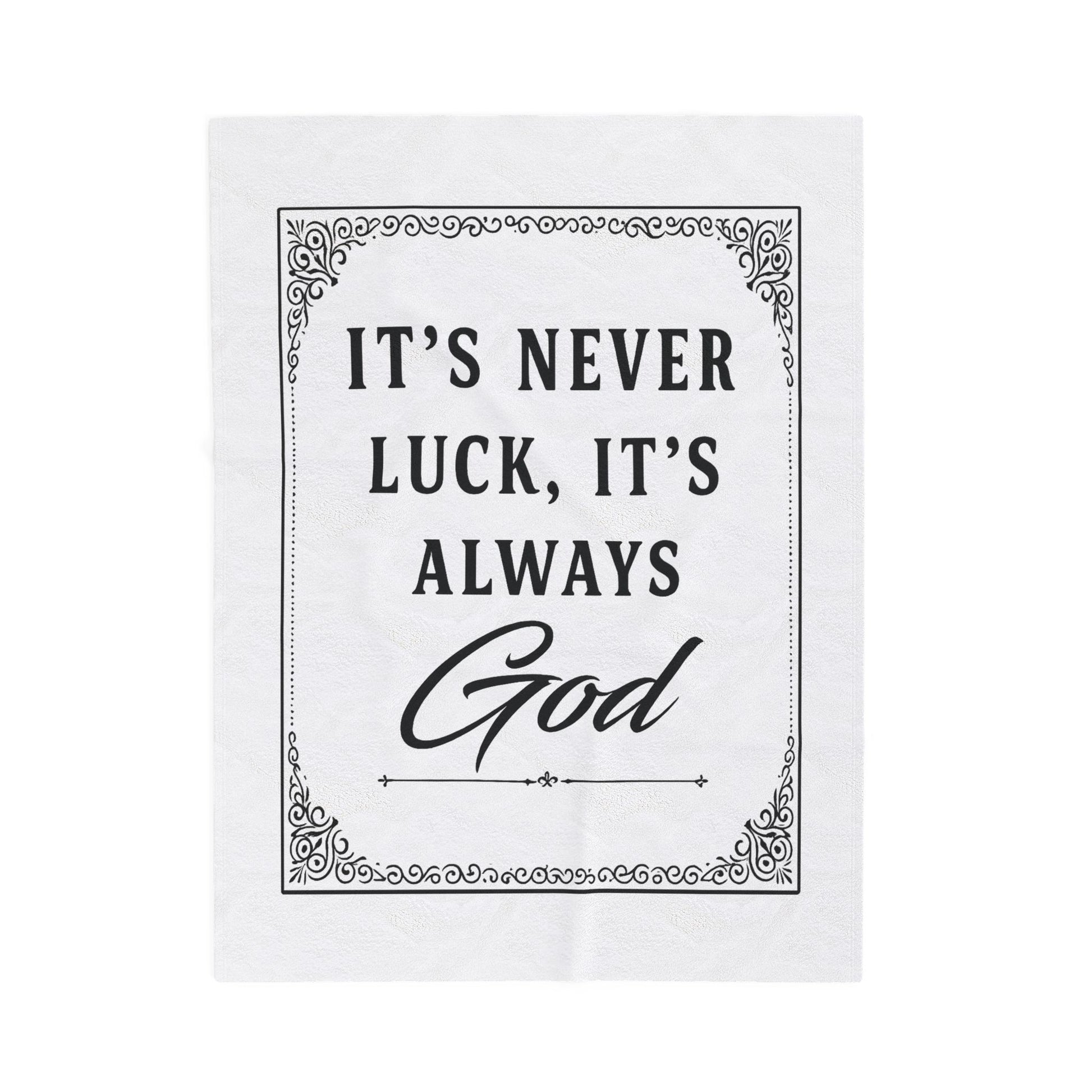 Religious Plush Blanket — "It's Never Luck, It's Always God" Velveteen Throw